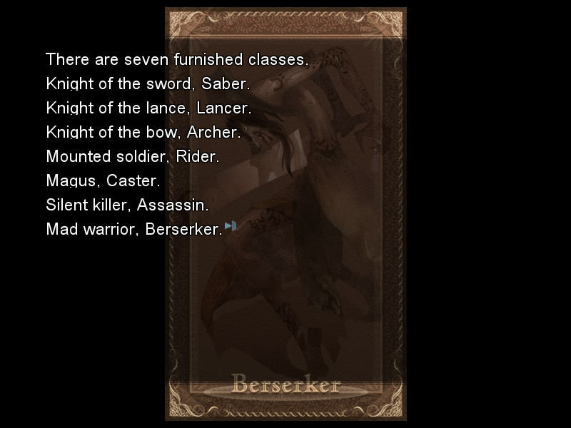 "Fate/stay night is a fantastic visual novel. It has an amazing story, one that revolves around thrilling ideals and an excellent premise."