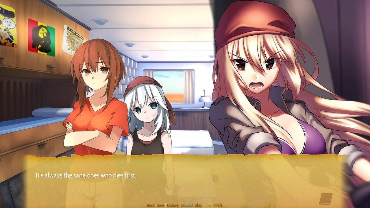 Developed by Alienworks, Highway Blossoms is a short yuri story set in the American Southwest. After an old gold rush miner's journal is discovered, a nationwide craze begins as would-be prospectors try to solve the cryptic clues it contains and discover the miner's hidden treasure. Amber, couldn't care less. Wandering the Midwest in an inherited motorhome, she mourns the loss of her grandfather, totally unaware of the hunt taking place around her. It's not until she meets Marina, a young hitchhiker wandering through the deserts of New Mexico, that things start to look up.